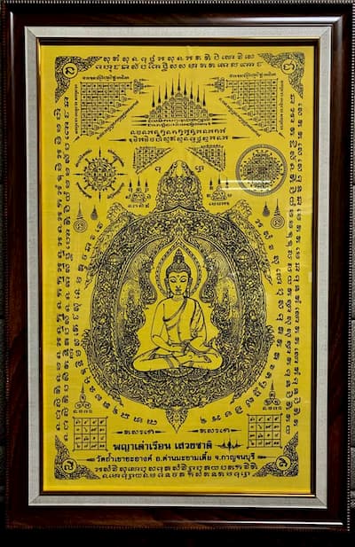 ผ้ายันต์พญาเต่าเรือนเสวยชาติ วัดถ้ำเขาชะอางค์ อ.ด่านมะขามเตี้ย จ.กาญจนบุรี