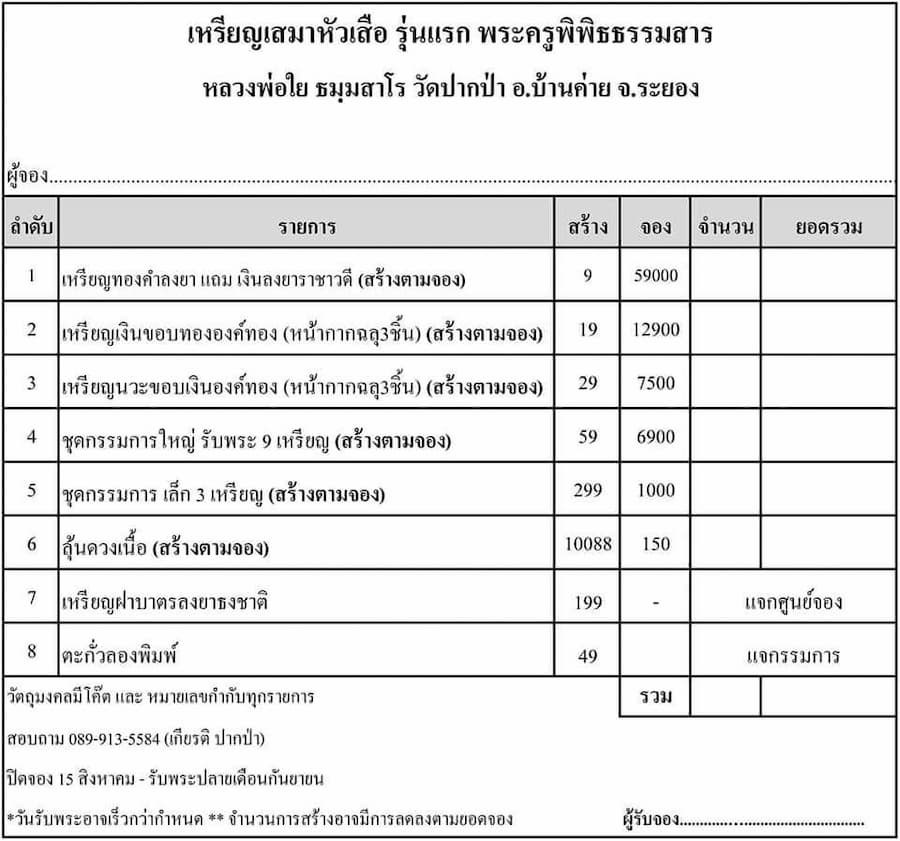 รายการ 6 ลุ้นเนื้อ (ลุ้น 12 รายการ) ราคาจอง 150 บาท มียอด 200 องค์