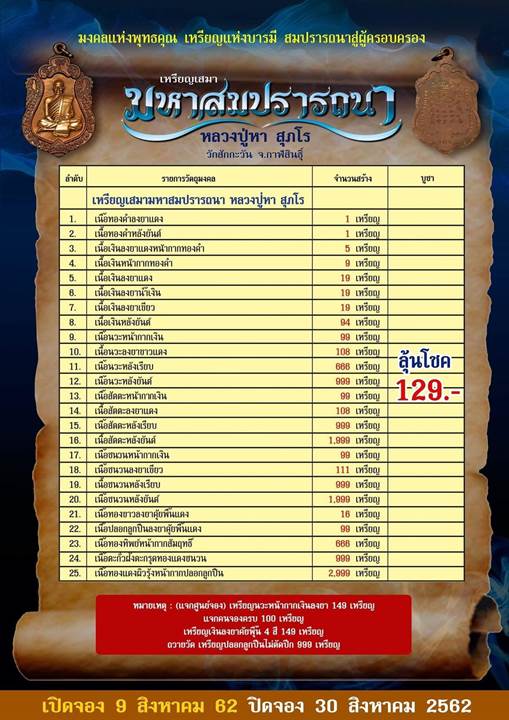 รายการ 3.ลุ้นโชค ราคาจอง 129.-บาท มียอด= 100