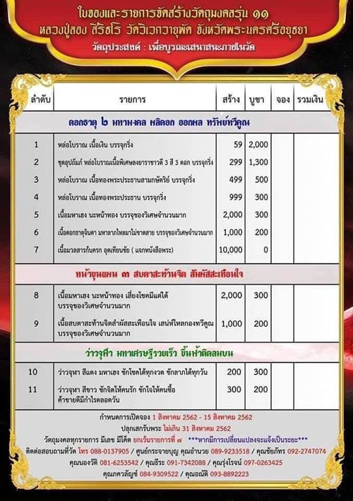 รายการที่ 6 จอง 200 บาท มี 18 องค์