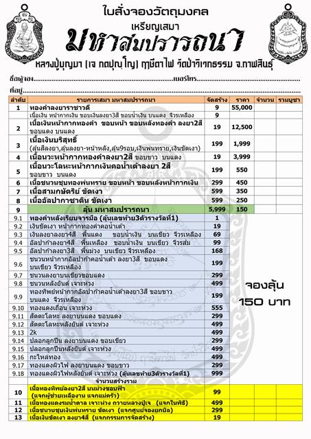 รายการ 9.ลุ้นเนื้อ ราคาจอง 150.-บาท มียอด = 50