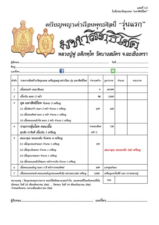 รายการ 3.ชุดมหาสิทธิโชค (รับพระ 3 เหรียญ) ราคาจอง 600.-บาท มียอด= 3