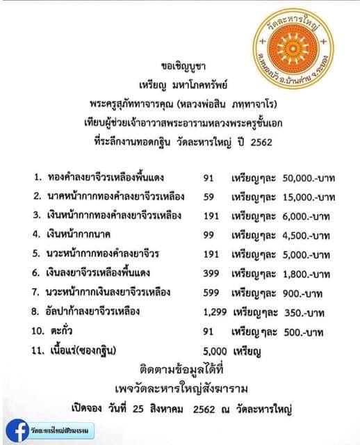 เหรียญมหาโภคทรัพย์ ปี 62 หลวงปู่สิน