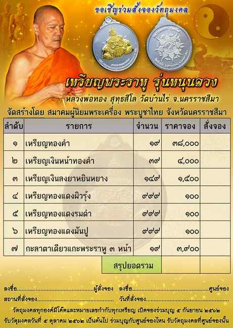 | หัวข้อกระทู้ : เปิดให้จองเหรียญพระราหู รุ่นหมุนดวง หลวงพ่อทอง สุทฺธสีโล |