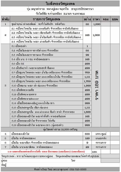 *** มีรายการเปิดจอง ดังนี้ครับ