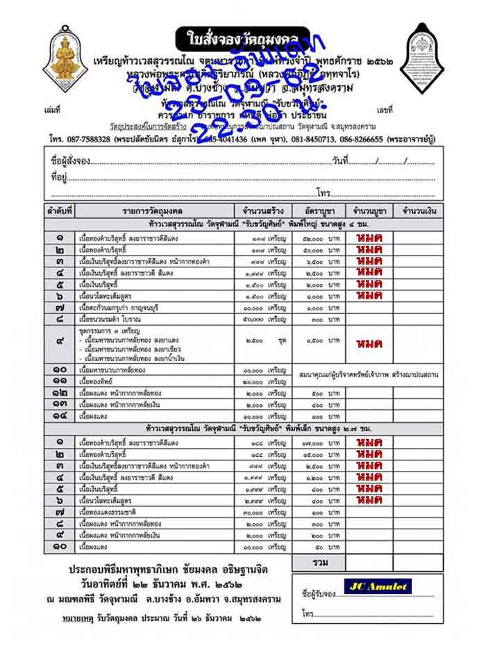 รายการนี้ ขออนุญาตจัดเป็นชุดนะครับ ไม่ได้บังคับจอง แต่เจตนาผมต้องการช่วยปัจจัยเข้าวัดเพื่อประโยชน์และเติมเต็มเจตนาของหลวงพ่อครับ