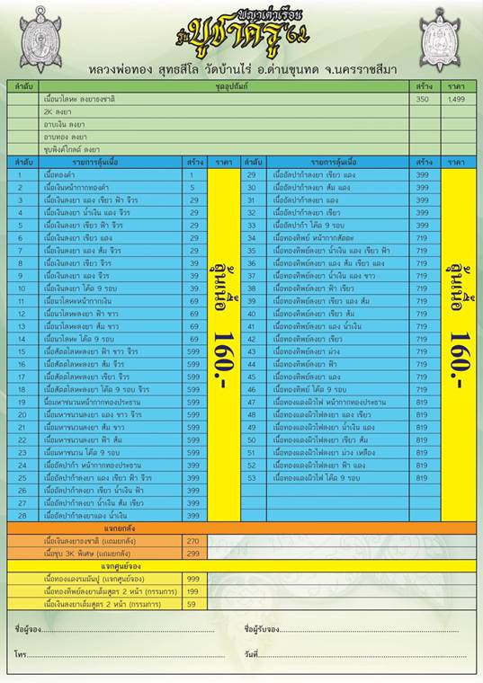 รายการ. ชุดอุปถัมภ์ (รับพระ 5 เหรียญ) ราคาจอง 1,499.-บาท มียอด= 2