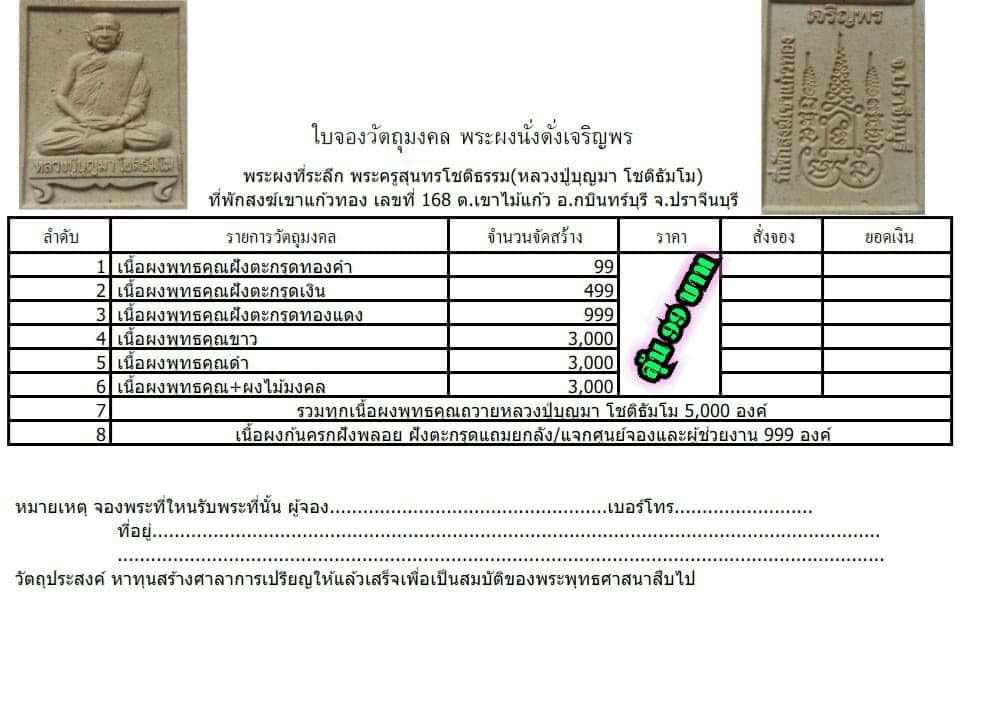 เปิดจอง พระผงนั่งตั้งเจริญพร หลวงปู่บุญมา สำนักสงฆ์เข้าแก้วทอง