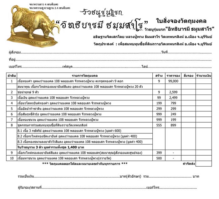 เพื่อสมทบทุนซื้อที่ดินถวายวัดเทพนรสิงห์ อ.เมือง จ.บุรีรัมย์