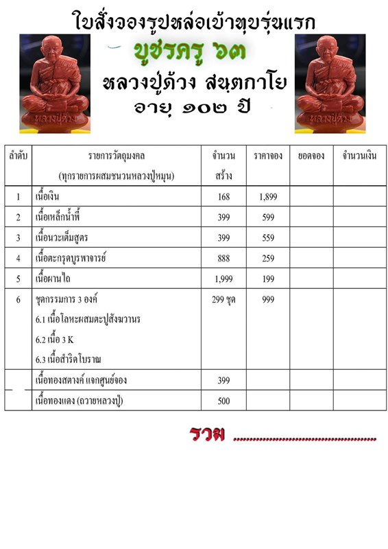 รายการ 6.ชุดกรรมการ (รับพระ 3 องค์) ราคาจอง 999.-บาท มียอด = 5
