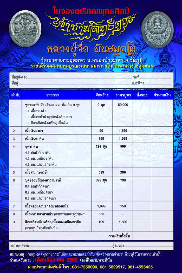 1. ชุดทองคำ จัดสร้างตามจองไม่เกิน 9 ชุด 59,0000 บาท