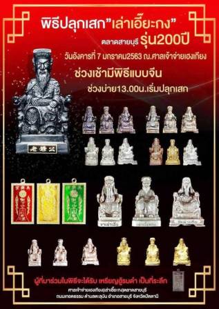 เป็นศาลเจ้าประจำเมือง แห่ง จังหวัดสายบุรี สังกัด มณฑลปัตตานี ในอดีต..ปัจจุบัน ศาลเจ้าแห่งทรุดโซม เป็น อันมาก กรรมการศาลเจ้าไม่มี งบประมาณ จึงได้จัดสร้าง องค์ เล่าเอี๊ยะกง เทพผู้ยิ่งใหญ่แห่งเมืองสายบุรี เพื่อให้เช่าบูชา สนใจ จองในกระทู้ได้เลย ให้ไวครับ สร้าง หลักร้อยองค์ เท่านั้น หรือ โทร 082-8045324 |