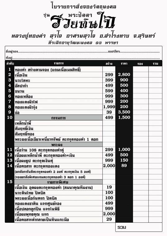 รายการ 10.ชุดกรรมการ (รับพระ 4 องค์) ราคาจอง 1,500.-บาท มียอด= 2