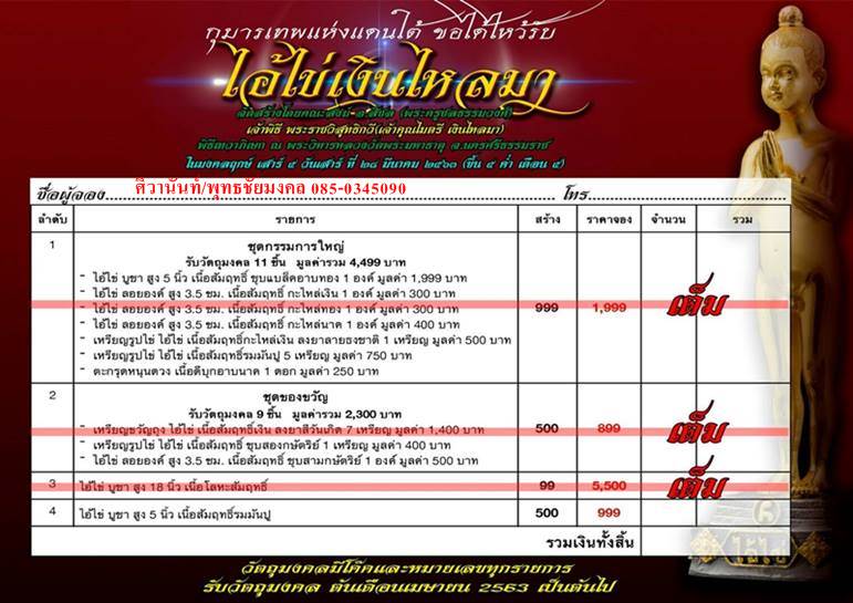 รับวัตถุมงคลประมาณต้นเดือน เมษายน 63