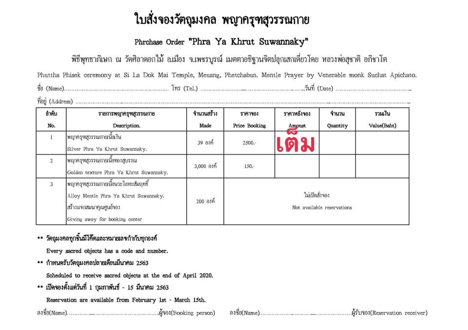 * เนื้อทองสุบรรณ ราคาจอง 150 บาท มียอด 20 องค์ครับ (ค่าจัดส่ง 60 บาทต่อบิล)