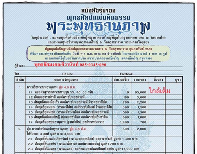 รับวัตถุมงคลประมาณปลายเดือน พฤษภาคม 63