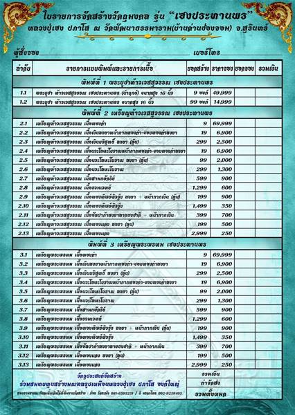 รายการ 2.6.เนื้อนวะโลหะโบราณ ราคาจอง 1,300.-บาท มียอด= 1