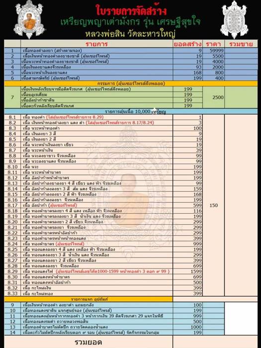 รายการ 7.ชุดกรรมการ (รับพระ 4 เหรียญ) ราคาจอง 2,500.-บาท มียอด= 5