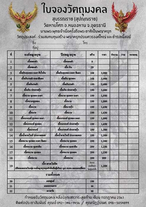 รายการ 10.องค์พญาครุฑ เนื้อนวะ ปีกพญาครุฑ เนื้อนวะ ราคาจอง 1,650.-บาท มียอด = 1