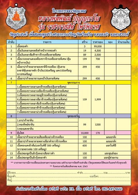 รายการ 5.เนื้ออัลปาก้าลงยาลายธงชาติ จีวรเหลือง(ลุ้นพิเศษ) ราคาจอง 450.-บาท มียอด= 5