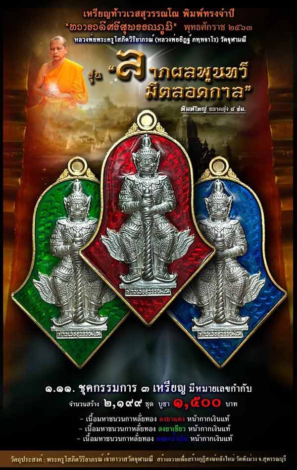 1.4 เนื้อเงินบริสุทธิ์ลงยาราชาวดีสีแดง มี 1 เหรียญ เหรียญละ 2,800 บาท