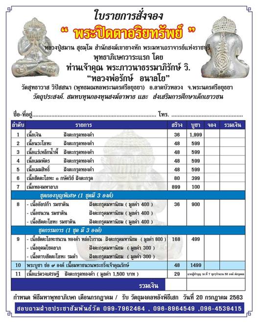 รายการ 8.ชุดกองบุญพิเศษ (รับพระ 3 องค์) ราคาจอง 900.-บาท มียอด= 5