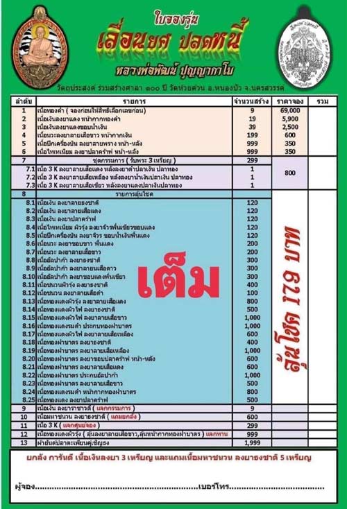 *** มีรายการเปิดจอง ดังนี้ครับ
