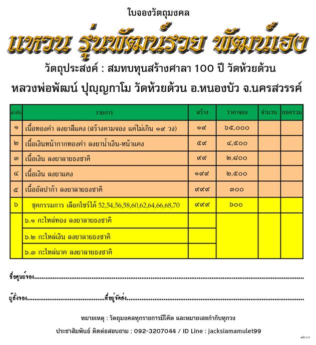 รายการ 1.เนื้อทองคำ ลงยาสีแดง ราคาจอง 65,000.-บาท มียอด= สอบถาม