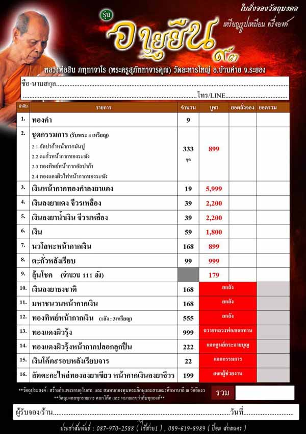 รายการ 3.เนื้อเงิน หน้ากากทองคำลงยาแดง ราคาจอง 5999.-บาท มียอด= 1