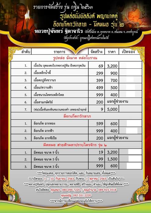 *** กำหนดรับวัตถุมงคล เดือน ตุลาคม 2563 เป็นต้นไปครับ