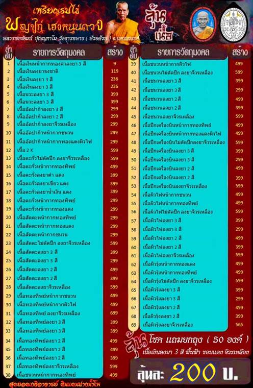 รายการ 7.ลุ้นเนื้อ ราคาจอง 200.-บาท มียอด= 100