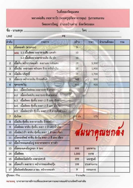 รายการ 1.เนื้อทองคำ+(เหรียญแถม 20 เหรียญ) ราคาจอง 59,999.-บาท มียอด= สอบถาม