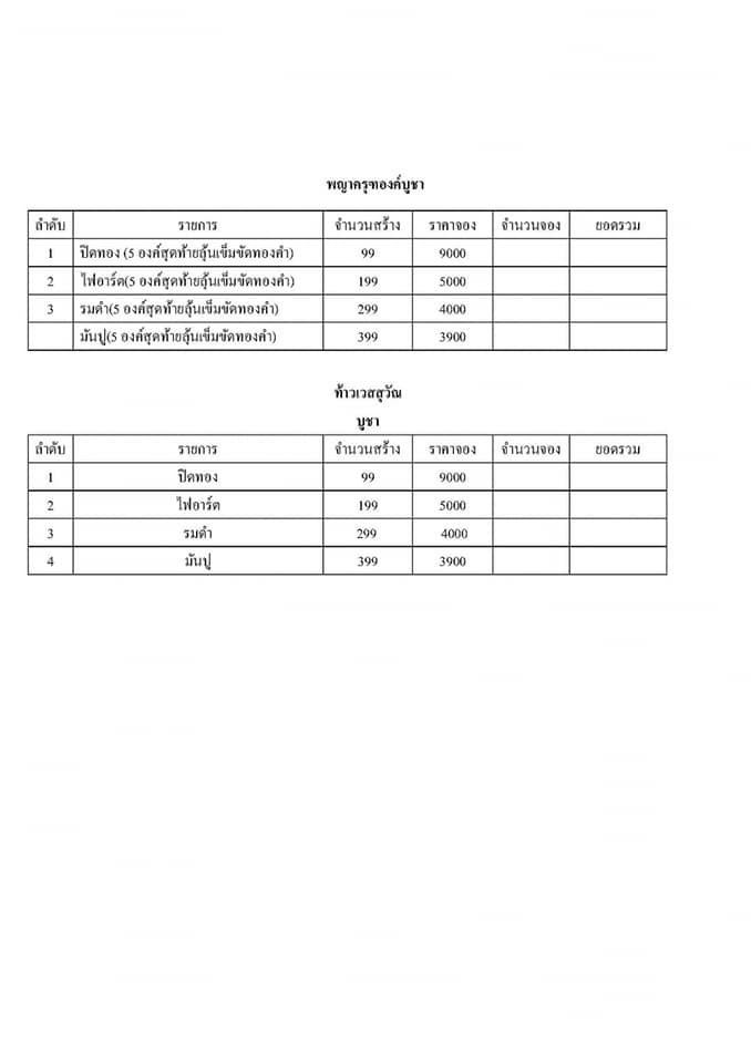 1.ปิดทอง(5องค์สุดท้ายลุ้นเข็มขัดทองคำ)สร้าง 99 องค์ ราคา 10,500 บาท