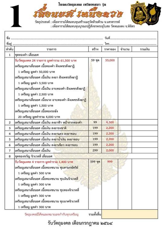 *** สมณาคุณสั่งจองยกลัง