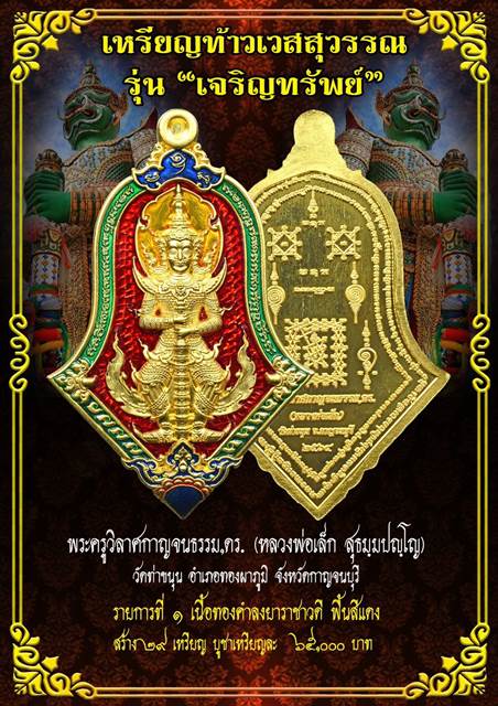 *** เปิดจอง// เหรียญท้าวเวสสุวรรณ รุ่น เจริญทรัพย์ หลังยันต์เกราะเพชร หลวงพ่อเล็ก วัดท่าขนุน อ.ทองผาภูมิ จ.กาญจนบุรี