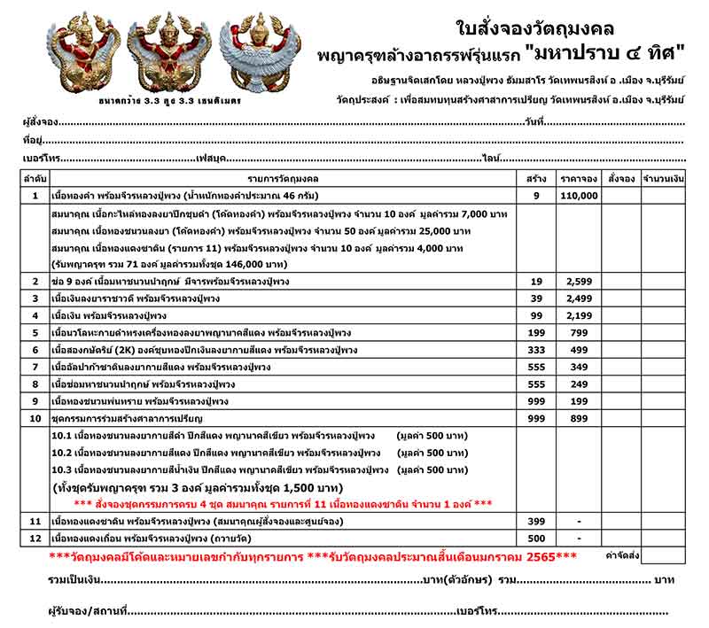 รับวัตถุมงคล : สิ้นเดือนมกราคม 2565