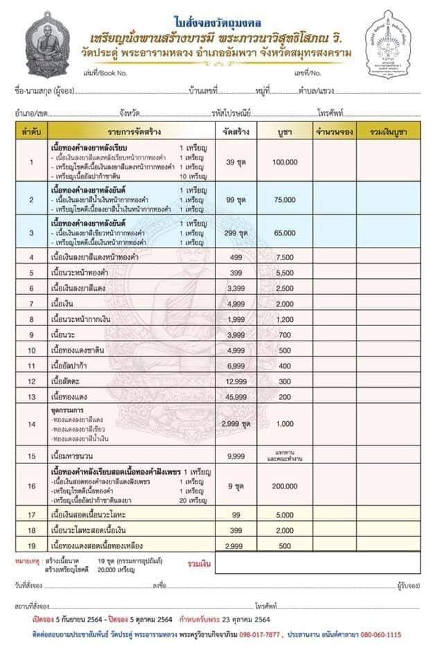 รายการที่ รายการที่ 14.ชุดกรรมการ (รับพระ3เหรียญ) ราคาชุดละ 1.000 บาท มียอด 10 ชุด