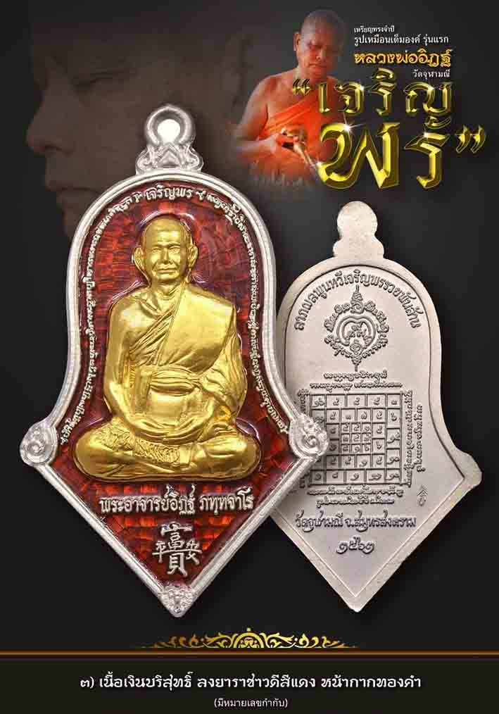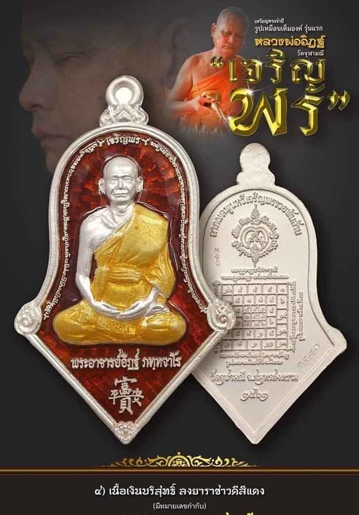 รายการที่ 4 เนื้อเงินบริสุทธฺิ์ลงยาราชวดีแดง จีวรหลือง ยอด 2องค์ๆละ 6500 บ.