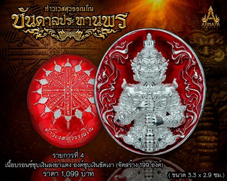 รก.4 เนื้อบรอนซ์ชุบทองลงยาแดง องค์ชุบเงินขัดเงา จอง 1099 มียอด 1 องค์