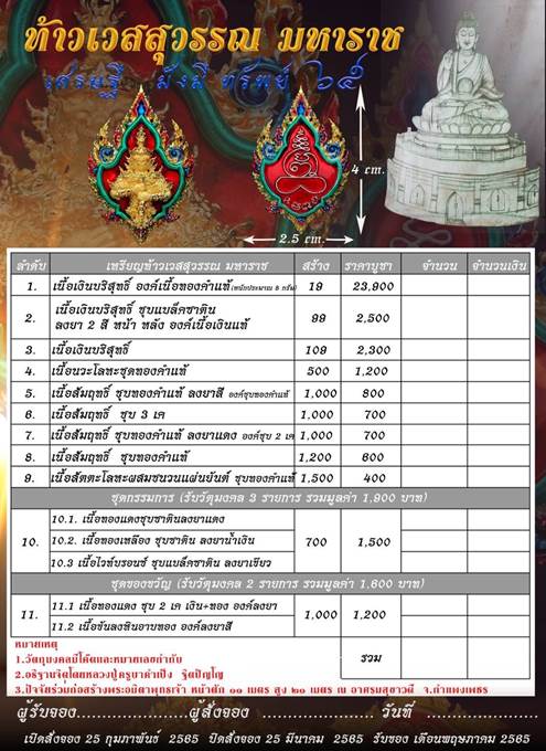 รายการ 5.เนื้อสัมฤทธิ์ ชุบทองคำแท้ ลงยาสี องค์ชุบทองคำแท้ ราคาจอง 800.-บาท มียอด= 10
