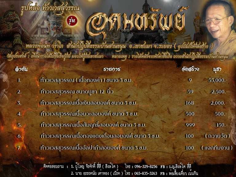 รายการ 4 ท้าวเวสสุวรรณเนื้อนวะหล่อลอยองค์ ขนาด 3 ซม. บูชา 500 บาท มียอด 35 องค์