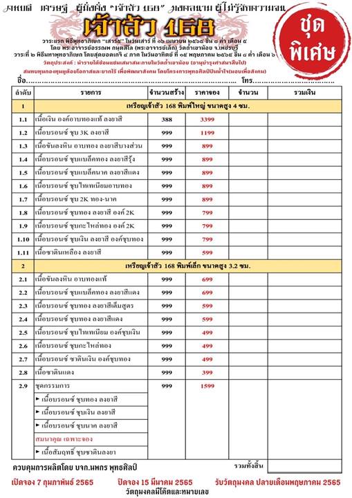 รายการ 5.เนื้อบรอนซ์ ชุบ 3 กษัตริย์ ราคาจอง 999.-บาท มียอด= 3