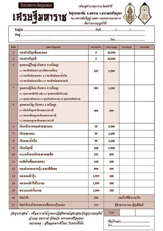 รายการ 3.ชุดเศรษฐีใหญ่ (รับพระ 5 เหรียญ) ราคาจอง 1,500.-บาท มียอด= 5