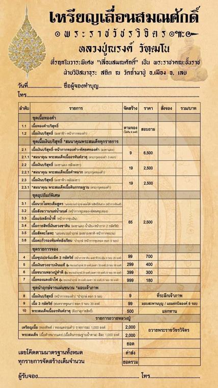 รายการ 3. ชุดอุปถัมภ์พิเศษ (รับพระ 6 เหรียญ) ราคาจอง 2,500.-บาท มียอด= 2