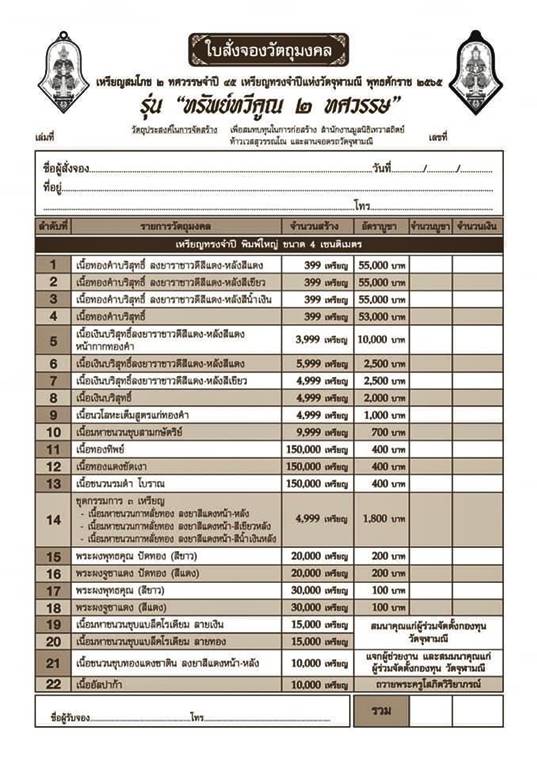 รายการ 1.เนื้อทองคำบริสุทธิ์ ลงยาราชาวดีสีแดง-หลังสีแดง ราคาจอง 55,000.-บาท มียอด= สอบถาม