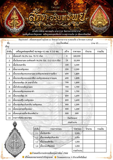 รายการ 14. เนื้อทองเทวฤทธิ์ซาตินองค์สว่าง ราคาจอง 999.-บาท มียอด = 5