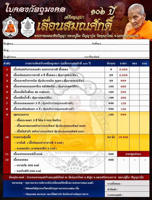 รายการ 4.เนื้อมหาชนวนลงยาจีวร หลังติดจีวร ราคาจอง 400.-บาท มียอด = 10
