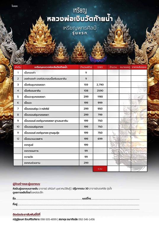 รายการ 7.เนื้อบรอนซ์ชุบ 3 กษัตริย์ ราคาจอง 950.-บาท มียอด = 5