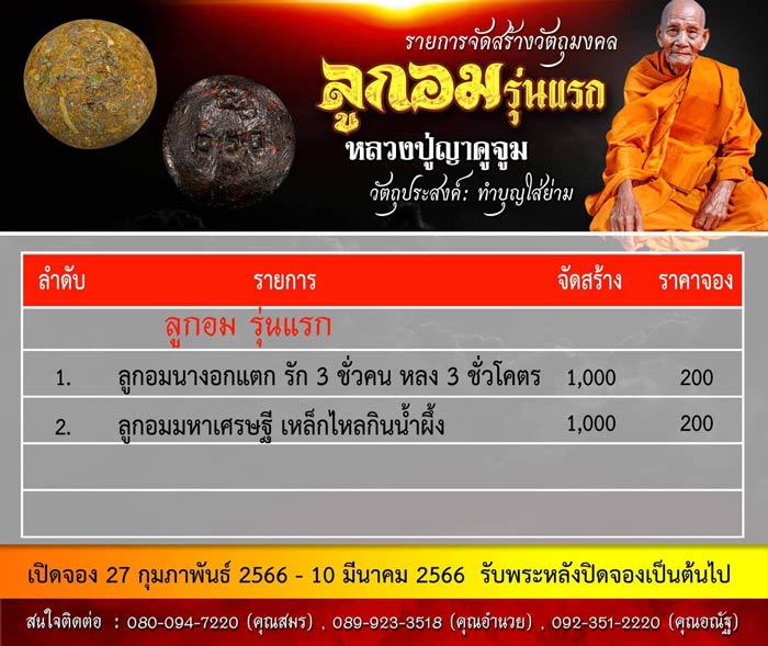 เปิดจอง หลวงปู่ญาคูจูม ลูกอมรุ่นแรก