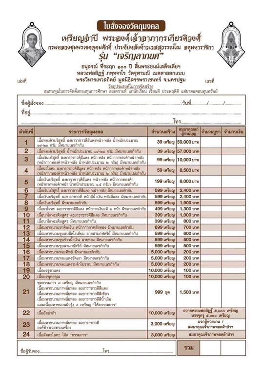 รายการ 21. ชุดกรรมการ (รับพระ 4 เหรียญ) ราคาจอง 1,500.-บาท มียอด= 5